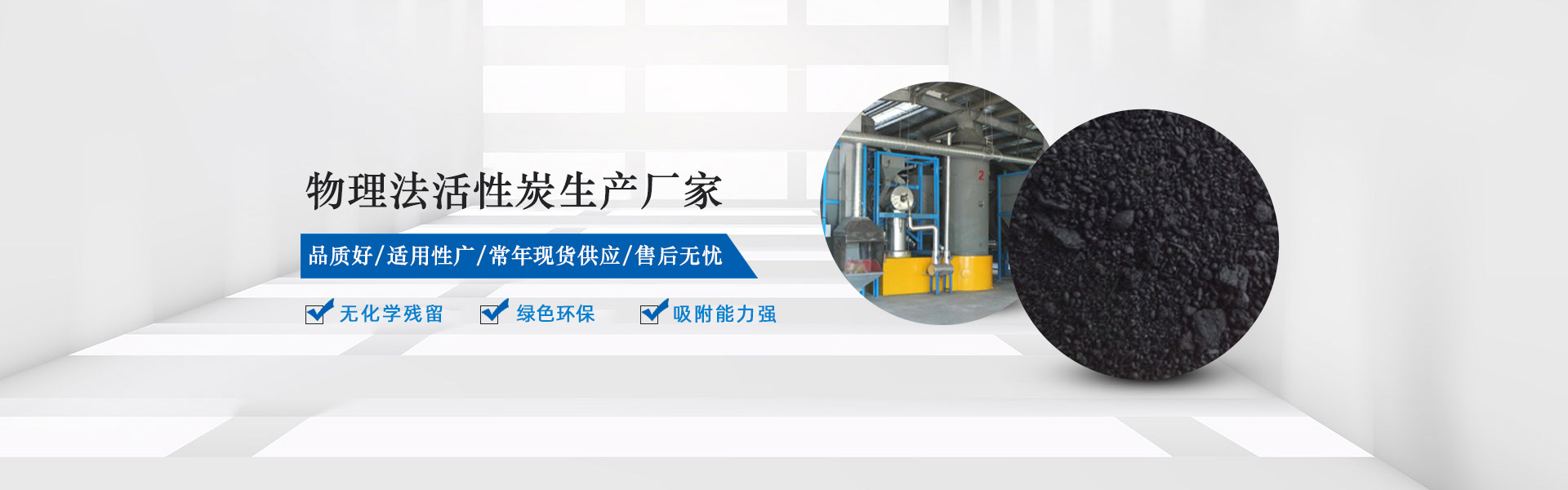 公司設(shè)計規(guī)模為20條物理法活性炭生產(chǎn)線,可年產(chǎn)2萬噸高品質(zhì)物理法活性炭,產(chǎn)品無化學(xué)殘留,綠色環(huán)保,具有比表面積大,吸附能力強,耐磨強度高,過濾速度快等優(yōu)點。